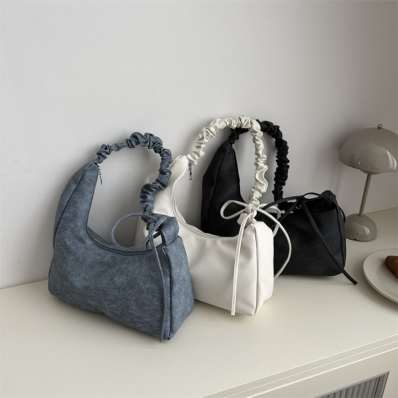 GUCSELECTED(B2070) กระเป๋าสะพายไหล่หนังพียู-ปรับสายย่นสะพายข้างได้