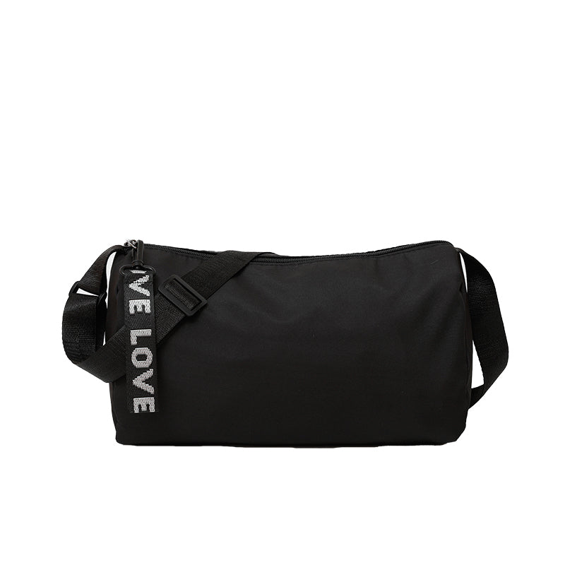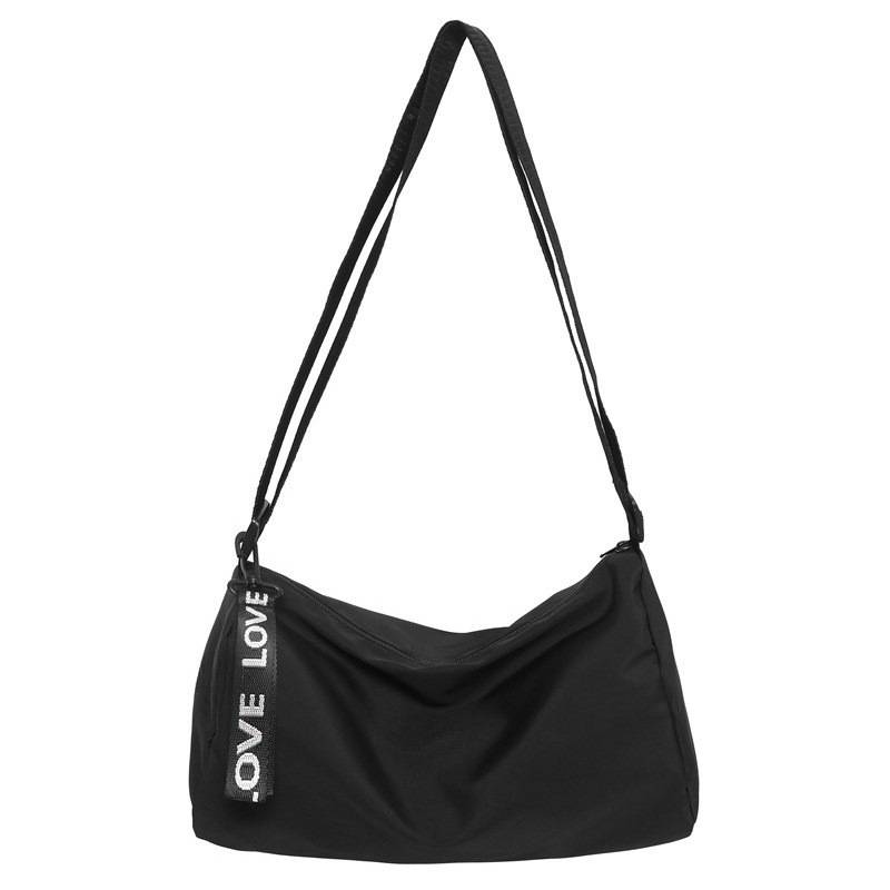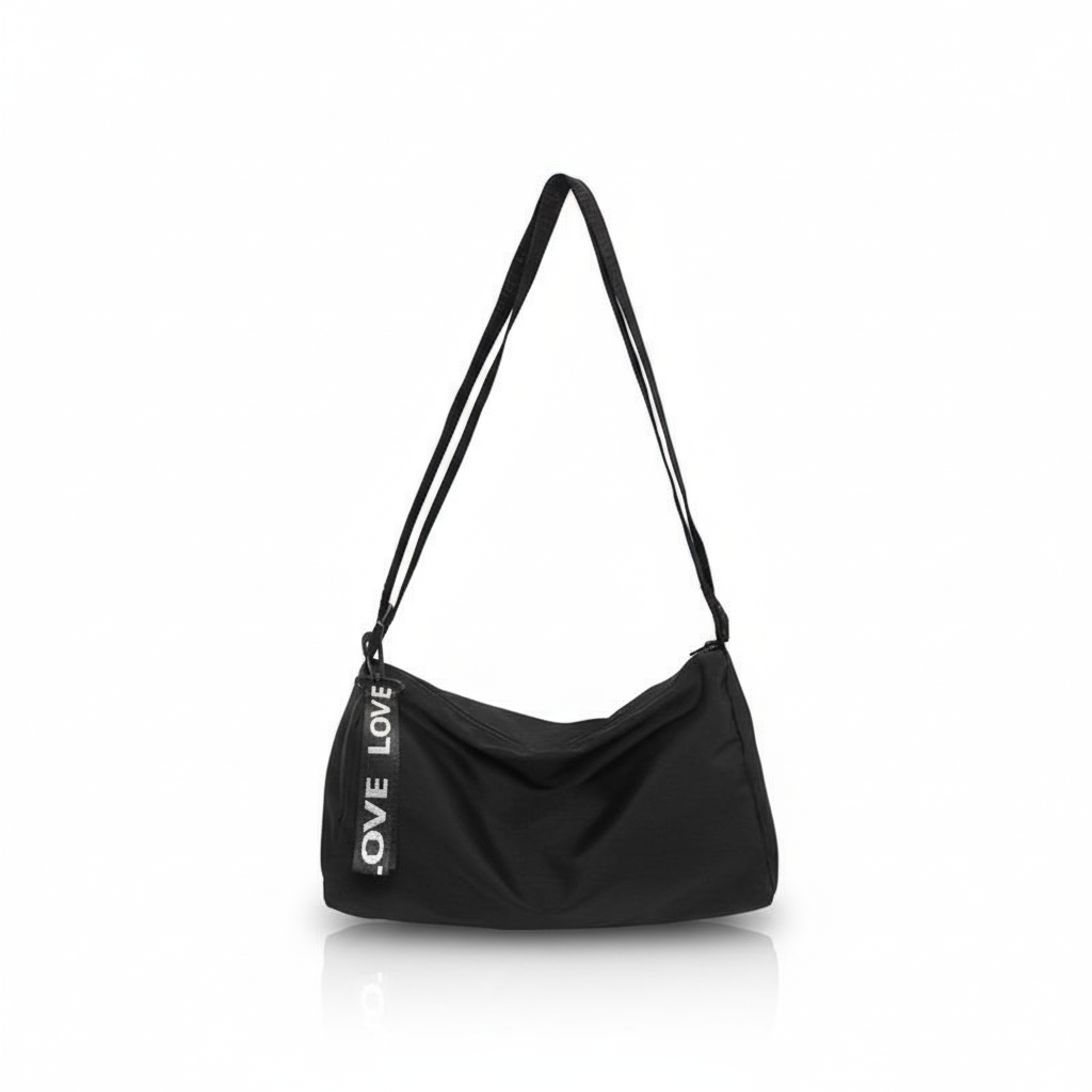 GUCSELECTED(B2262) กระเป๋าสะพายข้างสีดำ ซิปห้อยLOVE ผ้าอ๊อกฟอร์ดใส่ไปแอดได้
