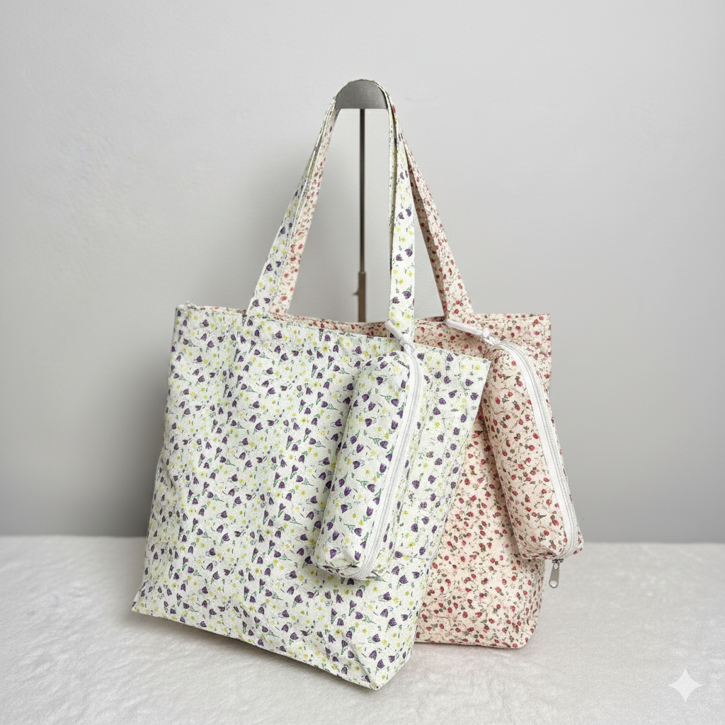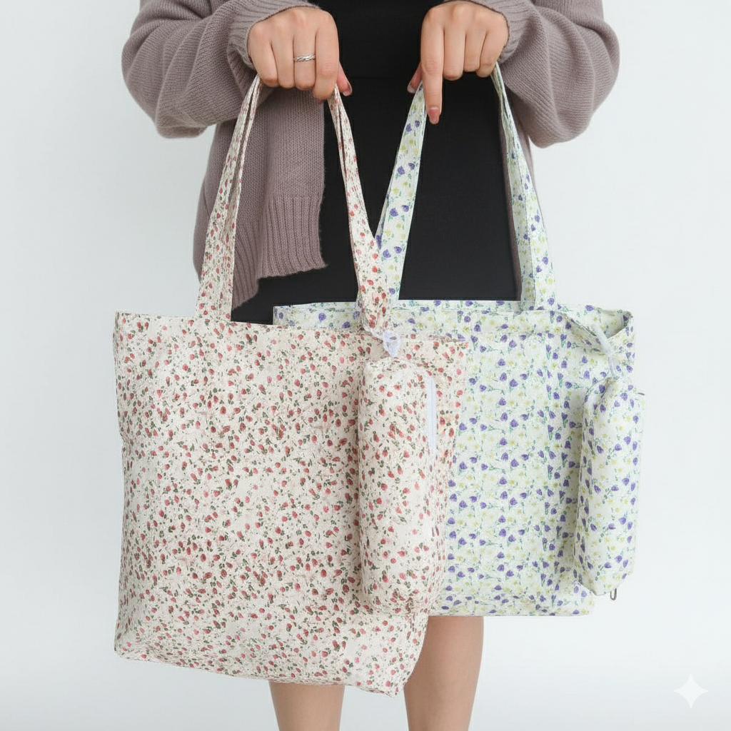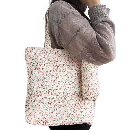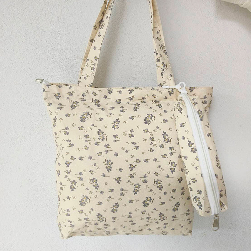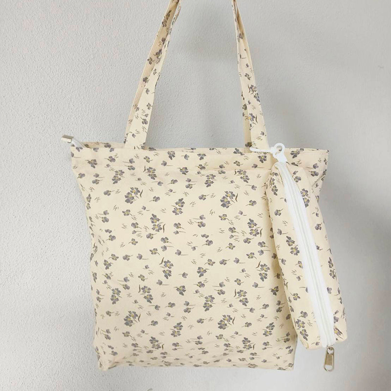 GUCSELECTED(B2392) กระเป๋าผ้าลายดอกไม้แถมประเป๋าใส่ดินสอ ใส่หมุดหนังสือA4ได้