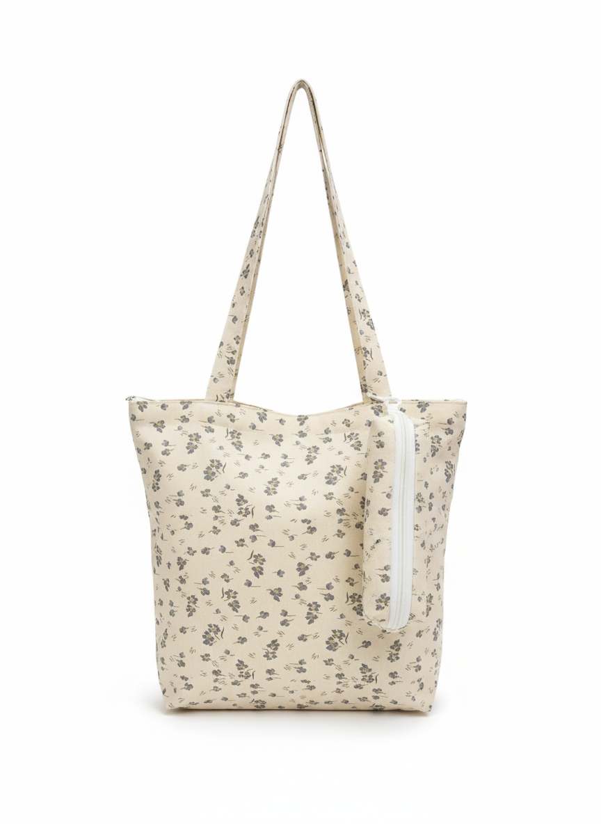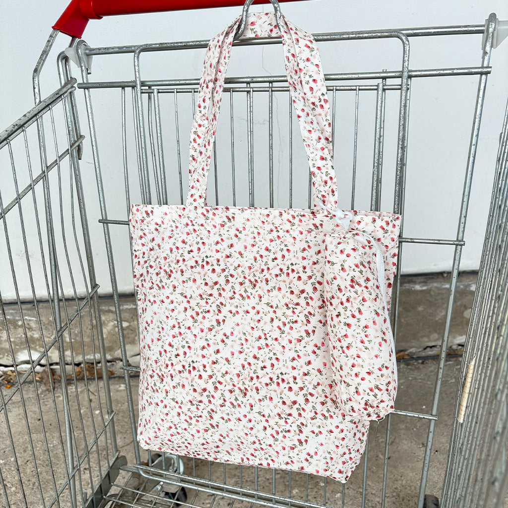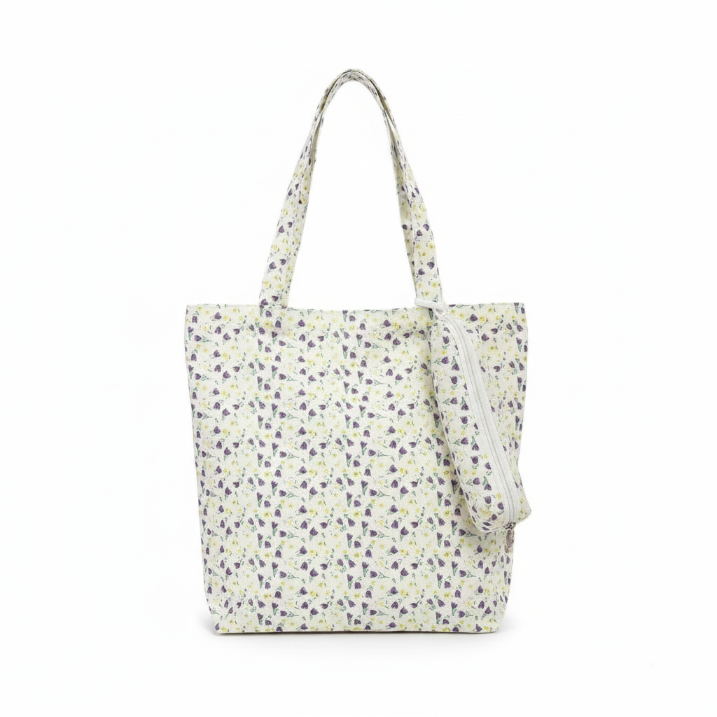 GUCSELECTED(B2392) กระเป๋าผ้าลายดอกไม้แถมประเป๋าใส่ดินสอ ใส่หมุดหนังสือA4ได้